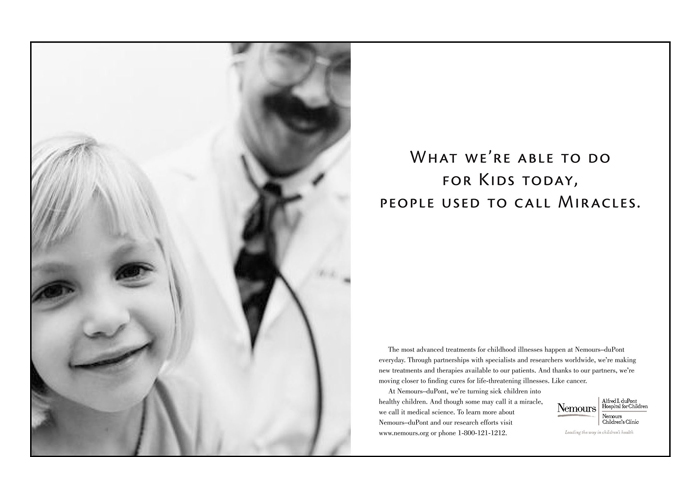 Solution: Mass advertising highlighted that the combined resources of the newly merged paediatric facilities would become one of the leading paediatric healthcare treatment and research centres in America.